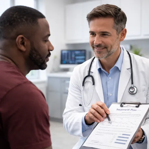 Meet with a men’s health specialist to discuss symptoms, goals, and medical history.
